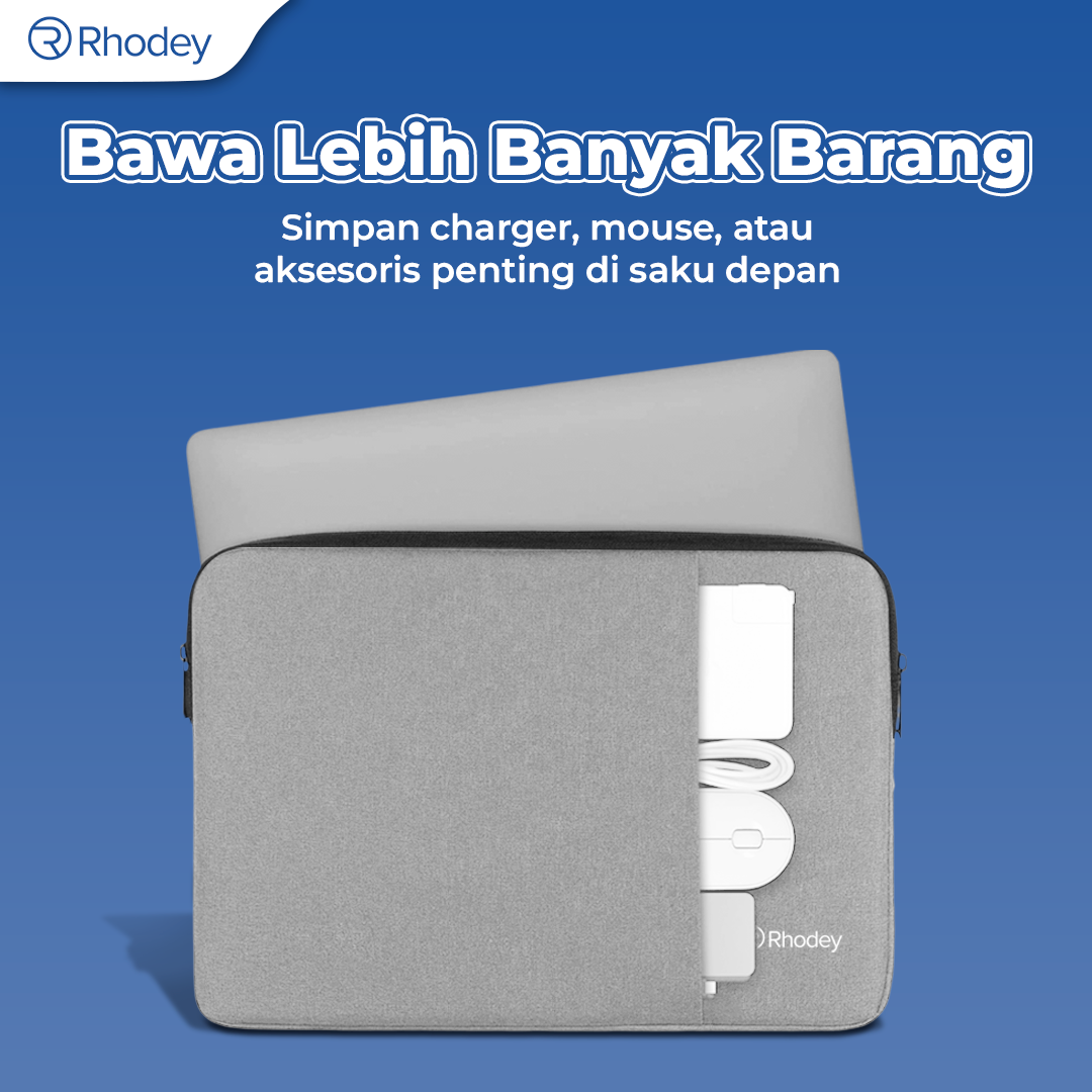 Bawa laptop selama perjalanan lebih aman dengan sleeve case dari Rhodey. Kombinasi kain oxford, busa, dan fleece tebal lindungi laptop dari debu, kotoran, hingga goresan. Dilengkapi kompartemen tambahan yang praktis untuk membawa charger, mouse, dan aksesoris laptop lain tanpa perlu tas tambahan. Ukuran universal dapat menyimpan laptop hingga ukuran 15.6 inch.