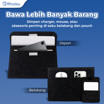 | Penyimpanan Ekstra Lebih Praktis Setiap pembelian sleeve case Anda akan mendapat pouch yang bisa digunakan untuk membawa charger, mouse, hingga kabel dengan rapi. |
