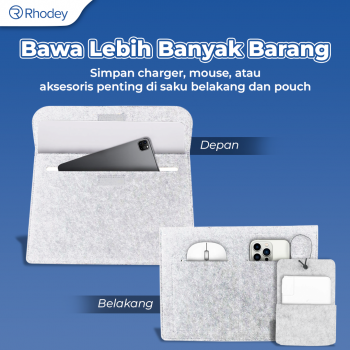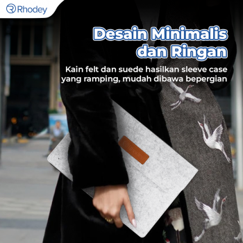Bawa laptop selama perjalanan lebih aman dengan sleeve case dari Rhodey. Bahan kain felt dan suede tebal lindungi laptop dari debu, kotoran, hingga goresan. Dilengkapi kompartemen tambahan yang praktis untuk membawa charger, mouse, dan aksesori laptop lain tanpa perlu tas tambahan. Tersedia dalam ukuran 12 inch hingga 15 inch yang bisa dipilih sesuai kebutuhan.