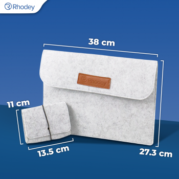 Rhodey Sleeve Case Laptop Macbook Felt with Pouch 15 Inch - AK01 - Light Gray