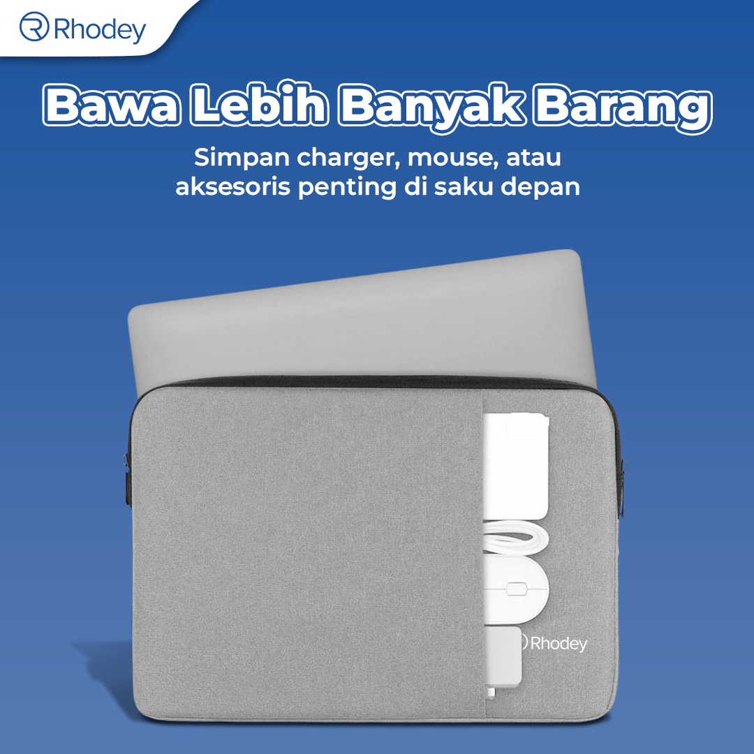 | Double Ritsleting Lebih Aman Sleeve case Rhodey dilengkapi double ritsleting untuk meningkatkan keamanan. Model ritsleting ini juga memudahkan Anda mengambil barang tanpa harus membuka seluruh sleeve case tas. |