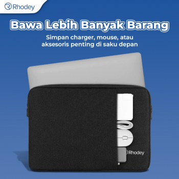 Sleeve case Rhodey dilengkapi double ritsleting untuk meningkatkan keamanan. Model ritsleting ini juga memudahkan Anda mengambil barang tanpa harus membuka seluruh sleeve case tas.