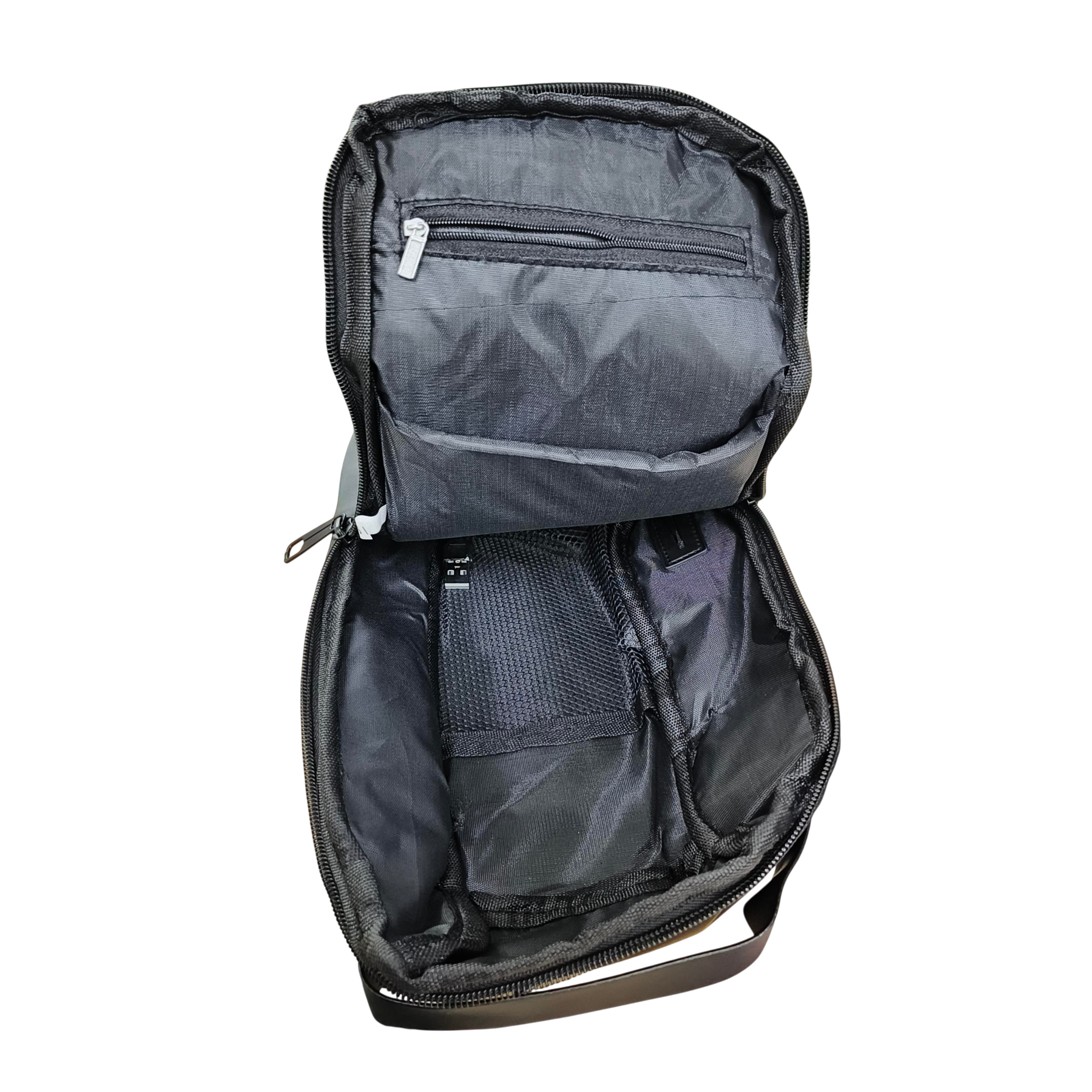 | Material Berkualitas Bahan tas terbuat dari poliester dan kulit sintetis berkualitas yang kuat, tidak mudah robek, dan juga tahan terhadap cipratan air. Selain itu, tali penopang dan pengait tas dapat diatur dan disesuaikan dengan ukuran badan. |