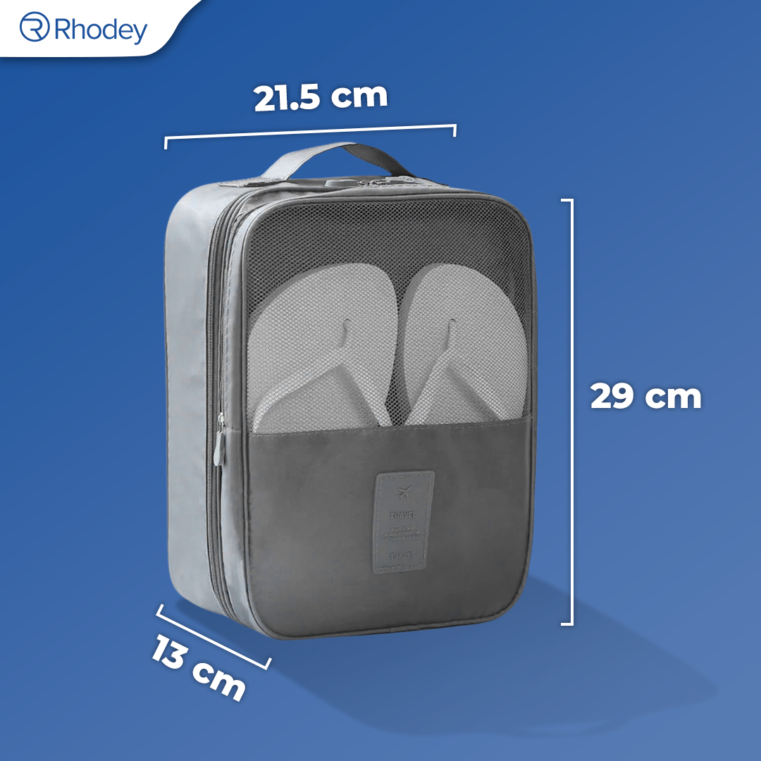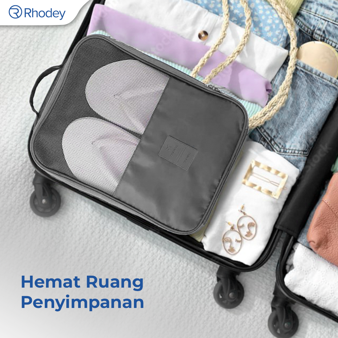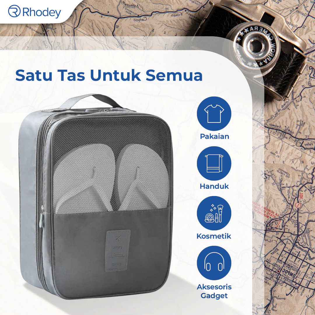 | Satu Tas untuk Semua Tak hanya sepatu, Anda juga dapat menggunakan tas untuk menyimpan aneka keperluan travel lainnya. Mulai dari pakaian, handuk, kosmetik, hingga aksesori gadget, simpan semua produk dalam tas sepatu multifungsi dari Rhodey. |