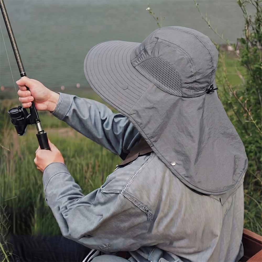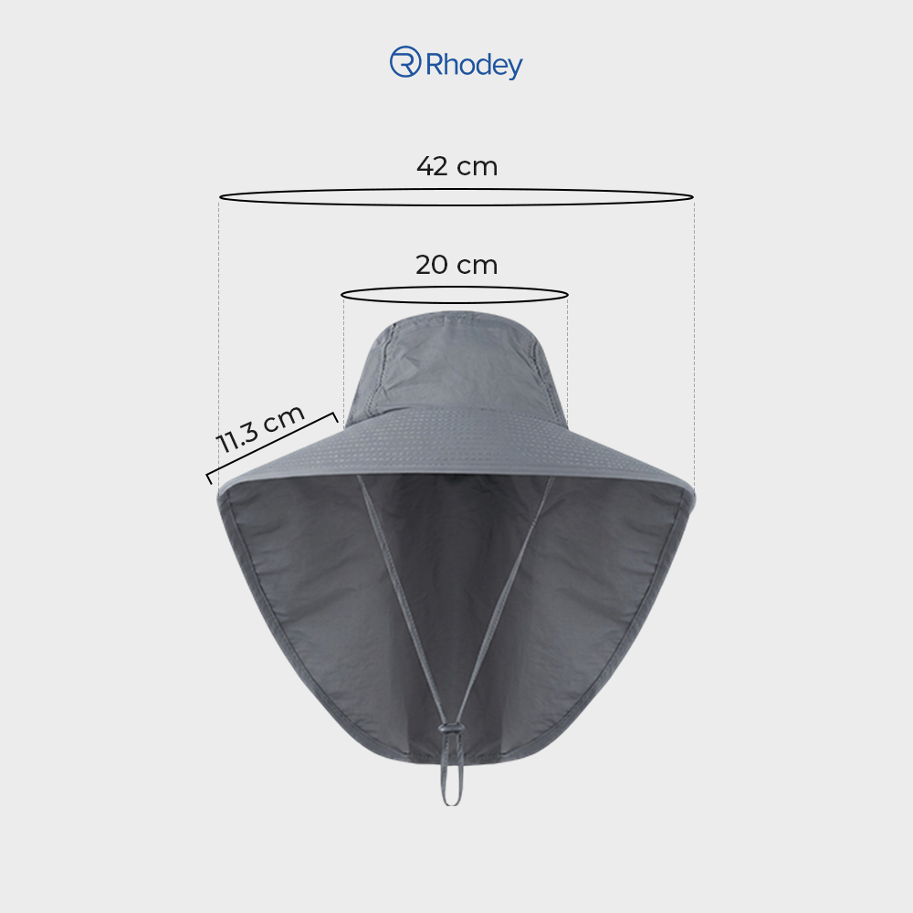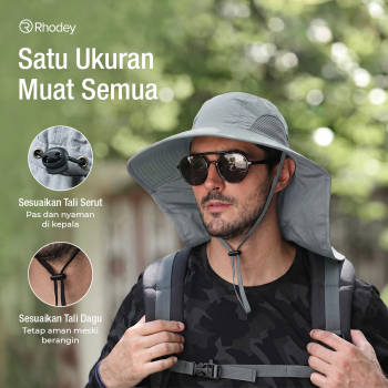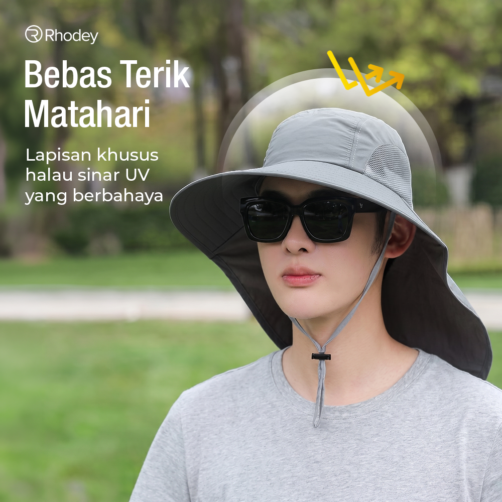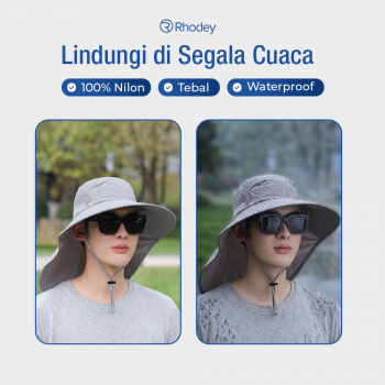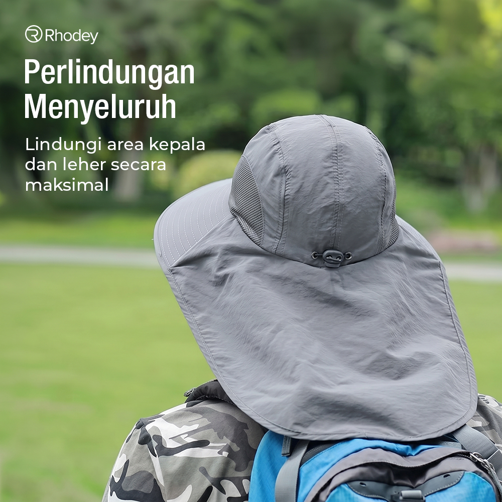 Topi outdoor Rhodey dengan desain lebar, bahan nilon waterproof, dan ventilasi mesh. Lindungi kepala dan leher dari panas, tetap sejuk dan nyaman saat memancing, hiking, atau beraktivitas di luar.