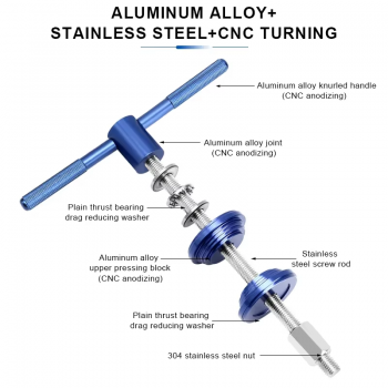 | Tekanan Atas Bawah Stabil Dilengkapi blok tekanan atas dan bawah yang dirancang khusus untuk mendistribusikan tekanan secara merata. Struktur ini membantu memastikan bearing masuk lurus tanpa miring, mengurangi risiko kerusakan pada frame maupun bearing itu sendiri. |