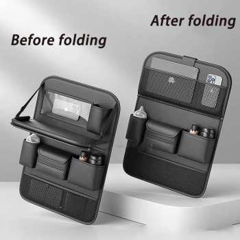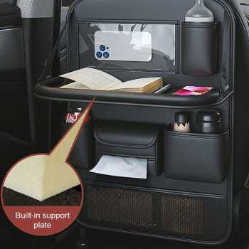 Jika Anda sering menyimpan barang-barang di mobil, Anda butuh sebuah kantong organizer untuk menyimpan semuanya agar tak membuat mobil berantakan. Memiliki banyak slot termasuk untuk gadget, tissue, hingga botol minum. Terbuat dari material napa leather yang elegan dan Oxford cloth yang tahan lama. Semakin sempurna dengan hadirnya meja lipat yang bisa Anda gunakan untuk laptop atau untuk meletakkan makanan.