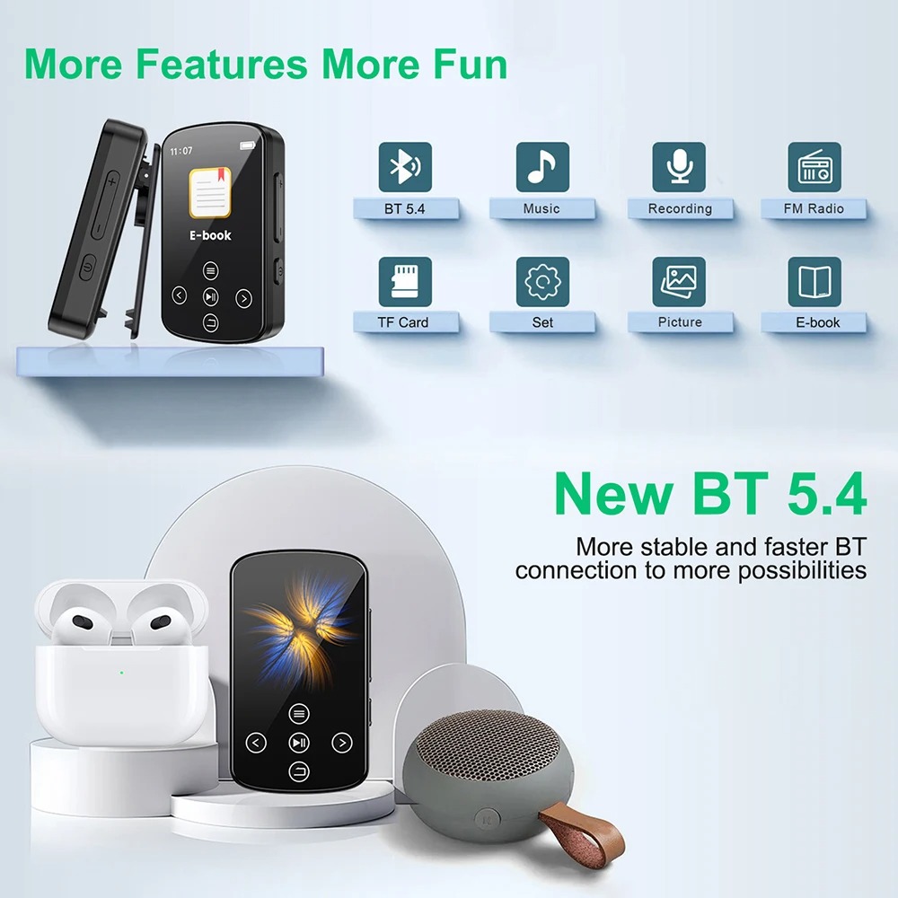 Telah hadir, MP3 MP4 music player dari RockStar! Nikmati pengalaman mendengarkan musik yang lebih fokus dan jernih. Menghadirkan kualitas suara HiFi tanpa gangguan notifikasi seperti pada smartphone Anda. Dilengkapi layar sentuh 1.5 Inch, konektivitas Bluetooth, dan desain back clip, ideal untuk menemani aktivitas harian, olahraga, perjalanan hingga waktu santai Anda.