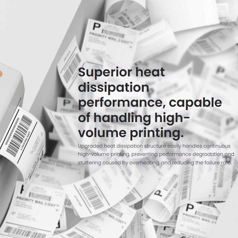 | Pembuanngan Panas Efisien Printer barcode thermal ini hadir dengan struktur disipasi panas yang telah diperbarui untuk menangani cetak volume tinggi secara kontinyu tanpa penurunan performa. Cover transparan memudahkan pemantauan status kertas secara real-time, sementara tombol pembuka cover yang ergonomis membuat penggantian roll kertas berlangsung cepat dan mudah. |