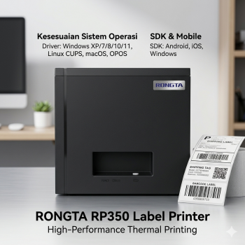 Bisnis online dan toko offline membutuhkan proses cetak resi yang cepat, jelas, dan minim error agar operasional berjalan lancar. Jika printer lambat atau hasil cetak buram, proses packing dan transaksi bisa terhambat. RONGTA RP350 Printer Thermal hadir sebagai solusi dengan kecepatan tinggi, hasil cetak tajam, dan fitur auto cutter yang memudahkan pekerjaan harian. Cocok digunakan sebagai printer barcode, printer resi, maupun printer kasir untuk berbagai jenis usaha.