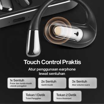 | Touch Control Praktis Tak perlu repot mengambil smartphone, cukup sentuh earphone untuk melakukan berbagai aktivitas. Fitur touch control responsif masukkan berbagai perintah hanya dalam 1x sentuh. |