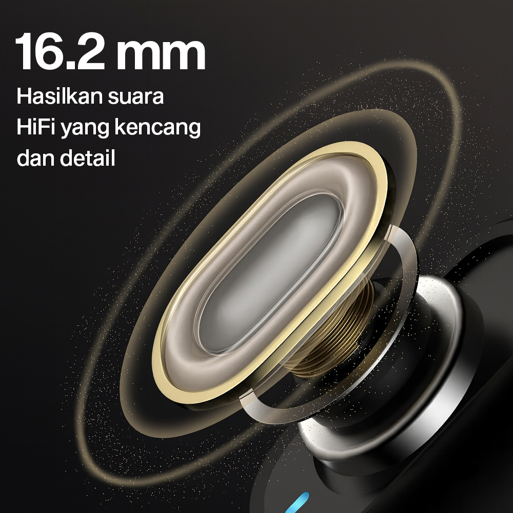 | Suara Kencang dan Detail Driver 16.2 mm hasilkan suara dengan kualitas HiFi yang kencang dan detail. Cocok untuk mendegar aneka lagu favorit. |