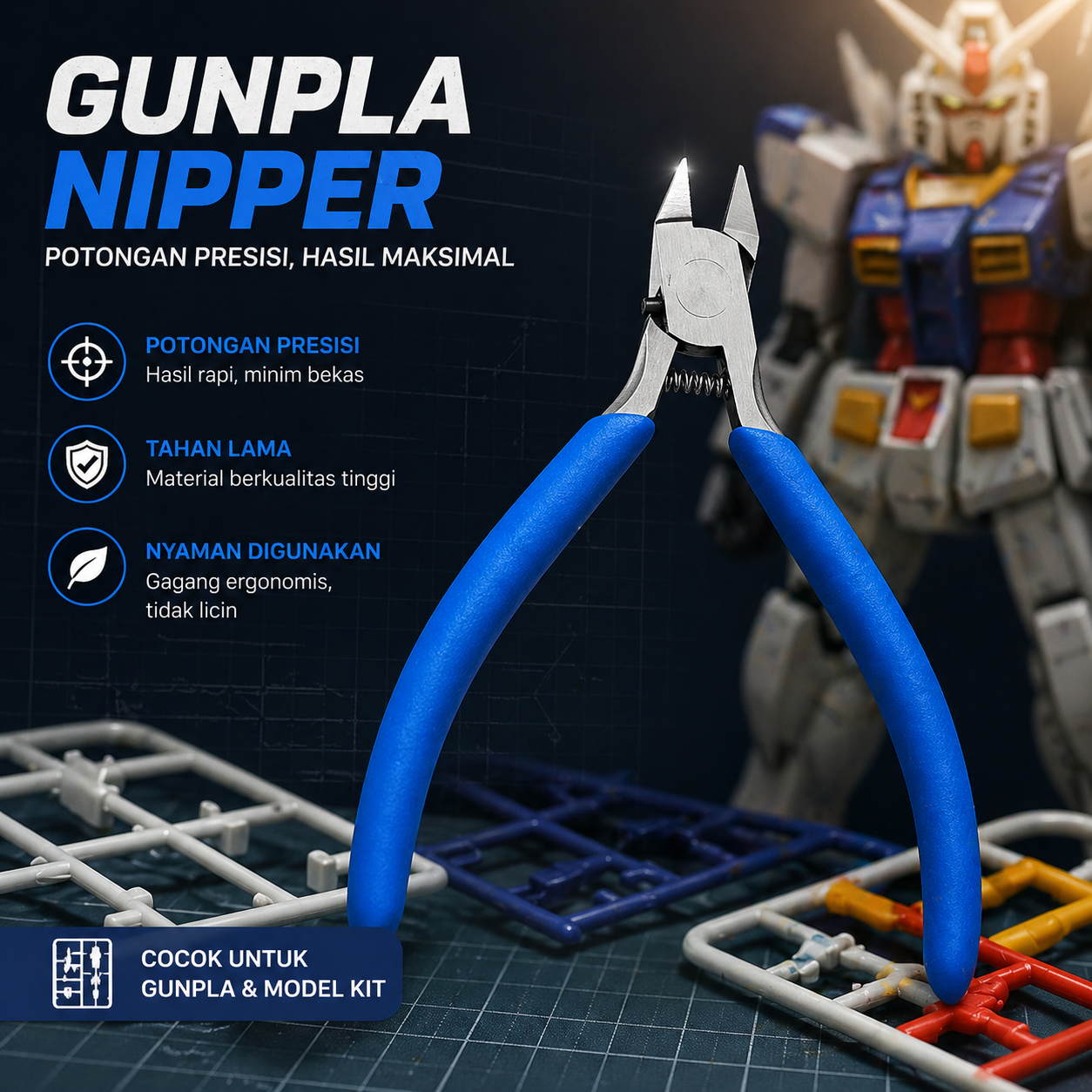 | Bahan Berkualitas Terbuat dari baja karbon berkualitas yang kokoh dan awet, ideal untuk pemakaian jangka panjang. Tang ini cocok untuk Anda yang gemar berkreasi menghasilkan miniatur plastik. |