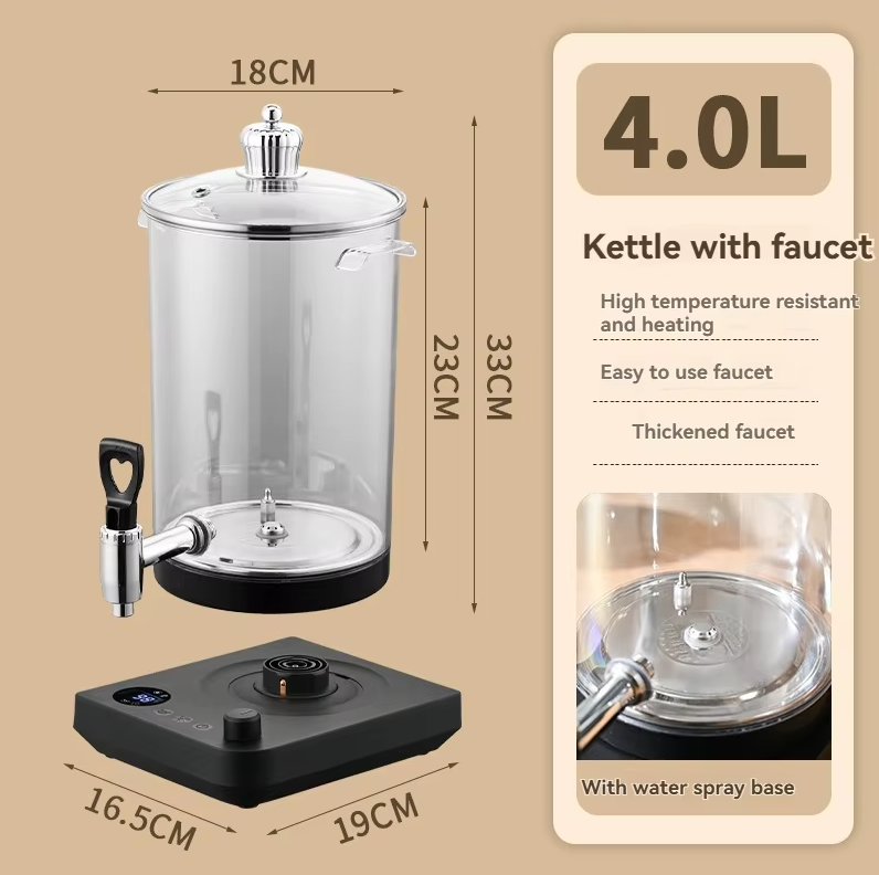 Gambar produk RUNBAISEN Dispenser Air Teh Panas Kaca Hot Drink Kettle Bucket 4L Water Spray Base - RB-10
