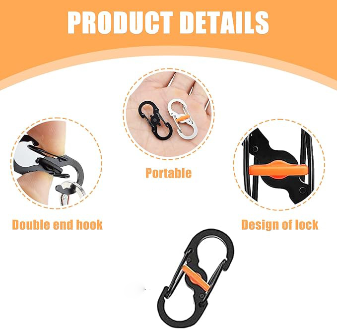 Carabiner dengan desain “S” Double Hook ini praktis dan fleksibel untuk membawa banyak barang sekaligus. Terbuat dari metal berkualitas yang kuat namun ringan, tahan lama untuk pemakaian jangka panjang. Cocok dipakai sehari-hari, travelling, hingga outdoor seperti camping atau hiking. Tidak untuk climbing atau safety gear.