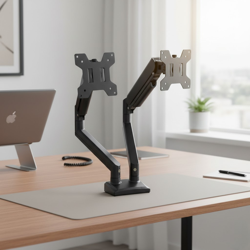 Menggunakan dua buah monitor sekaligus dapat meningkatkan produktivitas dalam bekerja, bermain game, atau belajar. Agar mendapatkan posisi terbaik, Anda dapat menggunakan bracket monitor table mount dengan dua lengan ini. Tidak hanya menyangga dua buah TV atau monitor sekaligus, posisinya pun dapat Anda putar 360°. Bracket ini cocok digunakan pada TV atau monitor layar datar berukuran 13-32 Inch.
