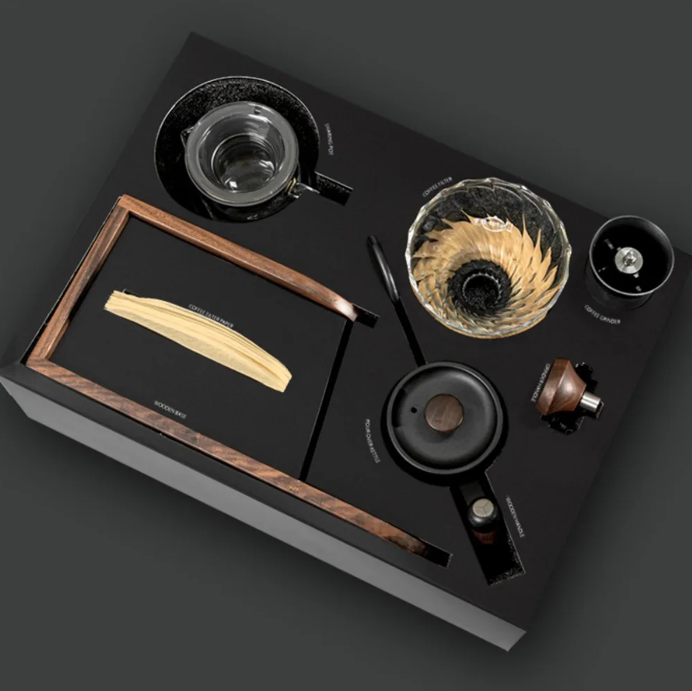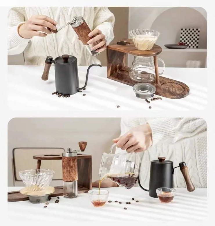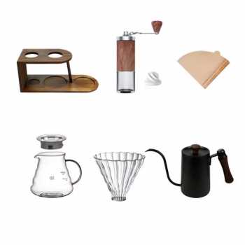 | Lengkap dan Elegan Dengan satu paket ini, kamu mendapatkan komponen kopi esensial yang tertata rapi dan siap pakai. Mulai dari stand kayu, penggiling manual untuk biji kopi, filter kertas, teko seduh, corong filter, dan teko server. Semua komponen dirancang agar bekerja sinergis memberikan pengalaman seduh yang mudah dan konsisten. |