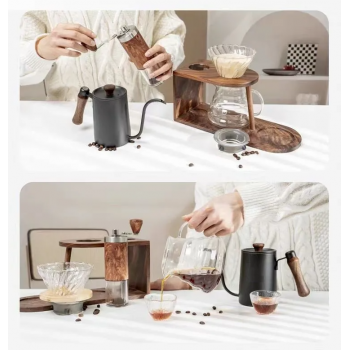| Kapasitas Ideal Teko seduh pada set ini memiliki kapasitas 600 ml, ideal untuk membuat 2 - 3 cangkir kopi sekaligus. Cukup untuk dinikmati sendiri atau dibagikan bersama teman dan keluarga. Ukuran ini pas untuk berbagai metode seduh manual dan cocok untuk rutinitas pagi atau santai sore hari. |