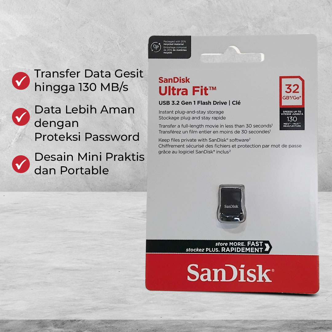 Simpan dan transfer file ke berbagai perangkat kini semakin cepat dan praktis menggunakan SanDisk Ultra Fit. Dibuat khusus untuk kebutuhan profesional, flashdisk ini memiliki kecepatan transfer mulai 130 MB/s hingga 400 MB/s yang gesit. Data lebih aman berkat enkripsi AES 128-bit dan software pemulihan premium. Kapasitas penyimpanan hingga 512 GB cocok untuk penggunaan sehari-hari.