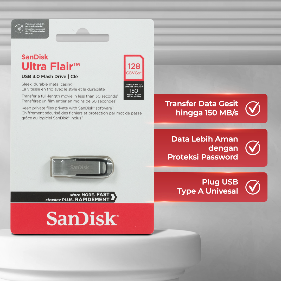 Gambar produk SanDisk Ultra Flair Flashdisk USB 3.0 Fast Read High Speed Metal Case 128GB - SDCZ73