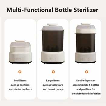 | Sterilisasi 5 Botol Sekaligus Alat ini dapat menampung hingga 5 botol bayi secara bersamaan, sehingga Anda dapat mensterilkan lebih banyak perlengkapan dalam satu waktu. Kapasitas besar ini sangat berguna untuk keluarga dengan lebih dari satu anak atau untuk penggunaan yang sering. Dengan begitu, rutinitas harian menjadi lebih efisien tanpa harus sterilisasi satu per satu. |