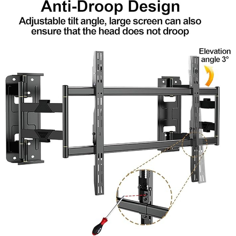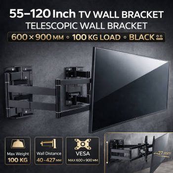 Bracket TV ini dirancang untuk menopang TV ukuran sangat besar hingga 120 inch dengan sistem lengan teleskopik yang fleksibel. Cocok untuk Smart TV, LED TV, LCD TV, OLED TV maupun TV komersial dengan pola VESA besar hingga 600 x 900 mm. Dengan kapasitas beban maksimal 100 kg, bracket ini ideal untuk home theater, ruang meeting, aula, hotel, restoran, hingga area komersial.