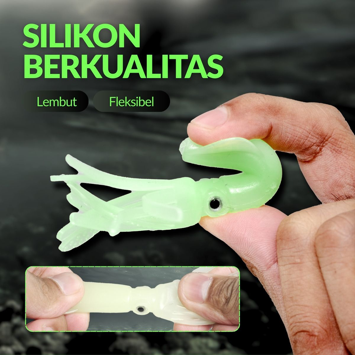 | Silikon Kuat dan Elastis Umpan pancing ini terbuat dari bahan silikon kualitas terbaik yang lembut dan tidak mudah rusak. Bahan ini membuat umpan tahan dari gigitan dan tarikan ikan. Selain itu karakter bahan yang fleksibel dapat menghasilkan gerakan seperti cumi-cumi asli. |