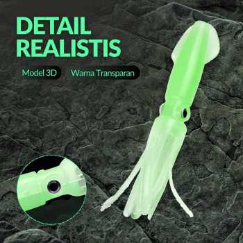 | Model Cumi-Cumi Realistis Kombinasi model cumi-cumi dan warna transparan membuat umpan pancing ini sangat realistis. Detail tentakel dan ekor yang digunakan membuat umpan pancing ini terlihat seperti cumi-cumi asli yang menarik. |