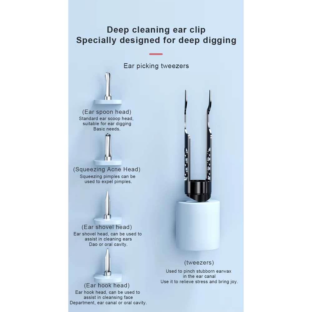 | Angkat Kotoran Lebih Maksimal Dilengkapi pinset dan 4 kepala metal. Pinset memungkinkan Anda menjepit dan mengangkat kotoran telinga dengan lebih presisi tanpa harus mendorongnya lebih dalam, sementara variasi 4 kepala metal memberikan opsi pembersihan yang bisa disesuaikan dengan kondisi telinga mulai dari kotoran kering, basah, hingga yang menempel. |