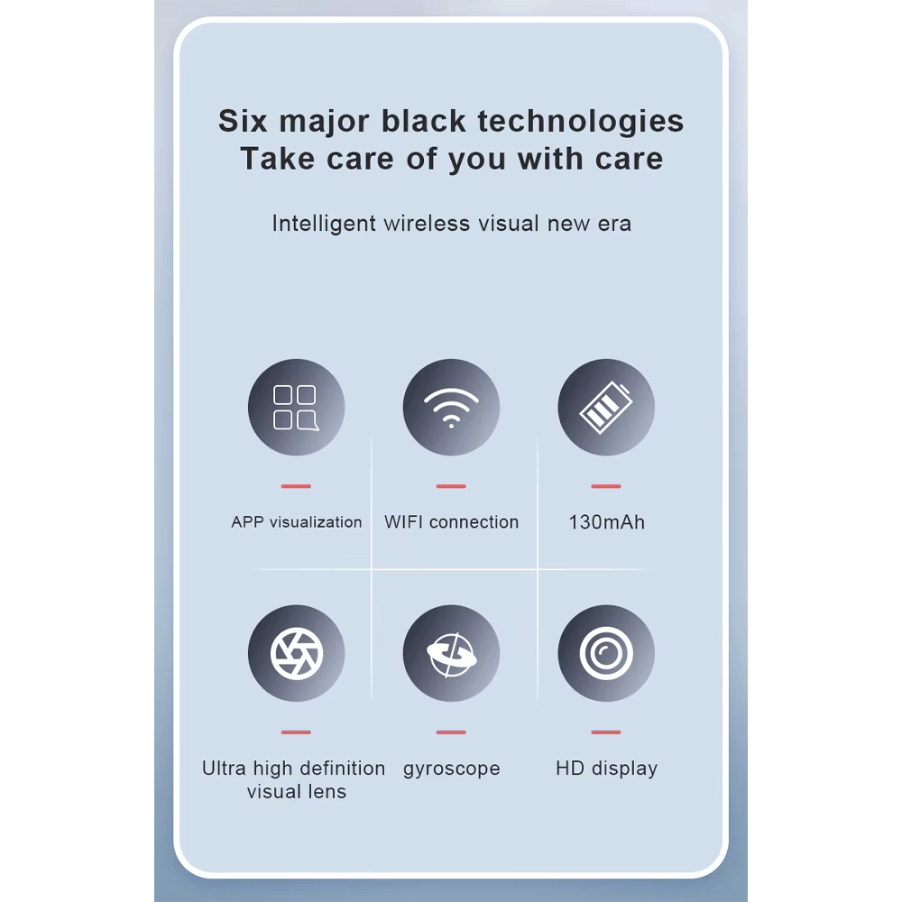 | Koneksi ke Aplikasi Stabil Tidak perlu pengaturan yang rumit, Anda hanya perlu mengunduh aplikasi yang diperlukan dan menyalakan kamera endoskopi. Menggunakan koneksi WiFi dengan kecepatan tinggi, menghadirkan transmisi gambar yang stabil tanpa delay. |
