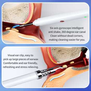 | Navigasi yang Mudah Dilengkapi teknologi 6-axis gyroscope yang memungkinkan rotasi 360° tanpa blind spot. Gambar tetap stabil dan tidak goyang, membantu Anda membersihkan telinga dengan lebih presisi, aman, serta menyeluruh. |