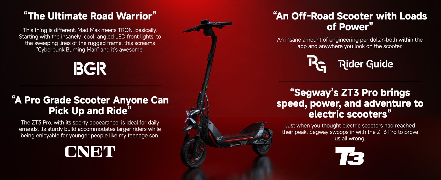 Ingin merasakan pengalaman berkendara yang aman, menyenangkan, dan canggih? KickScooter ZT3 Pro dari Segway Ninebot bisa memberikannya untuk Anda. Dibekali motor brushless yang mampu memberikan daya hingga 1600 W, melewati medan datar hingga tanjakan bukanlah masalah. KickScooter juga dibekali ban tubeless 11 Inch yang membuat gripnya makin nyaman.