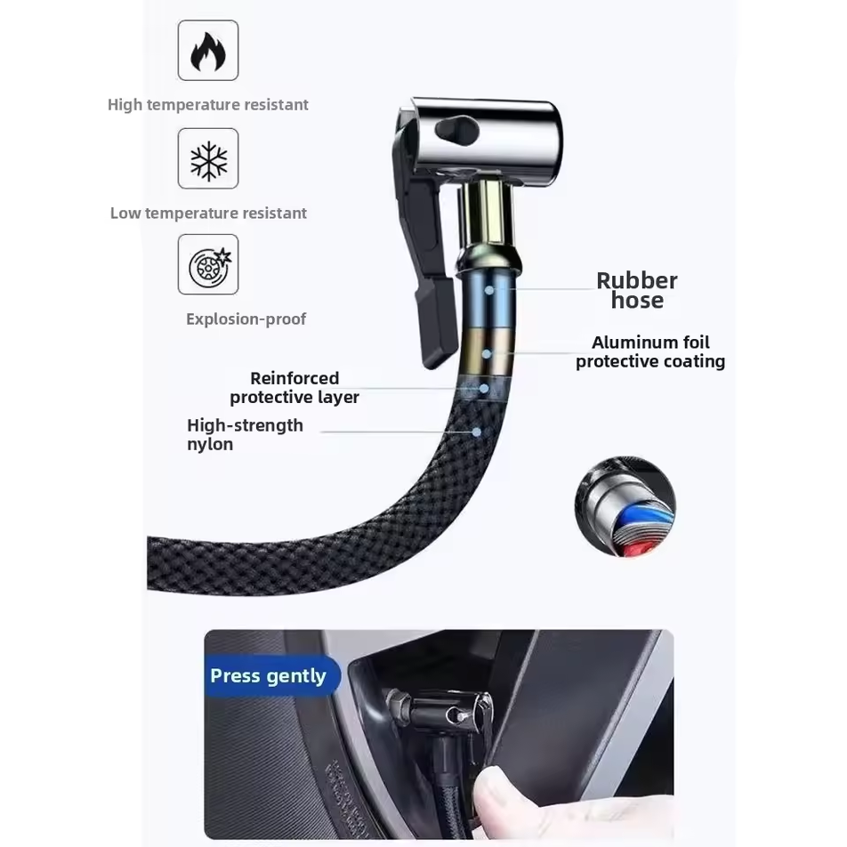 | Tahan Lama Pompa ini dilengkapi selang udara berbahan nilon berkualitas tinggi yang kuat dan tahan tekanan tinggi. Selang yang kokoh membuat proses pemompaan lebih aman dan lancar tanpa mudah bocor atau cepat rusak, sehingga Anda bisa mengandalkannya untuk penggunaan jangka panjang dalam kondisi yang beragam. |