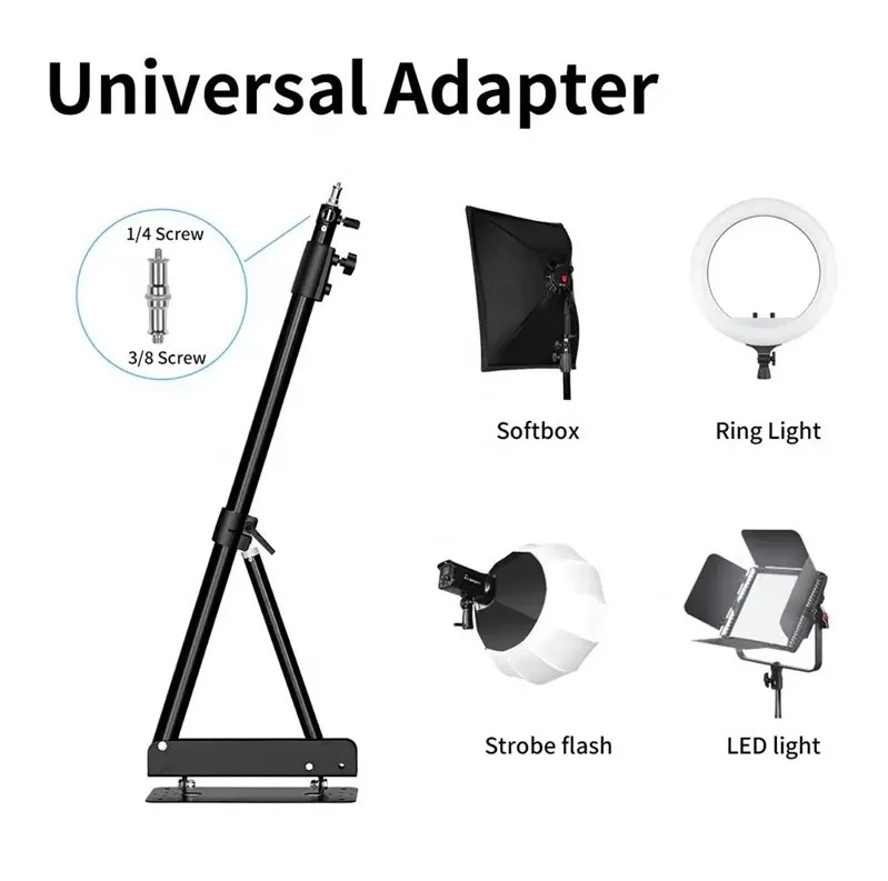 | Kompatibilitas Luas Dilengkapi ulir standar 1/4 Inch dan 3/8 Inch, bracket ini kompatibel dengan berbagai perangkat seperti lampu studio, LED light, ring light, softbox kecil, hingga aksesori fotografi lainnya. Fleksibel untuk berbagai merek dan jenis peralatan, menjadikannya solusi serbaguna untuk beragam setup. |