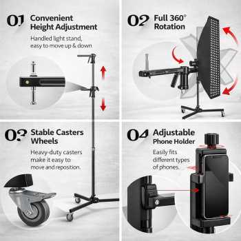 | Praktis untuk Penggunaan Studio Tripod light stand ini dirancang agar mudah digunakan dan cepat disiapkan, cocok untuk kebutuhan profesional maupun home studio. Mekanisme lipatan memungkinkan stand dibuka dan ditutup lebih efisien tanpa memakan banyak waktu. Fitur ini sangat membantu bagi Anda yang sering berpindah lokasi atau memiliki ruang kerja terbatas. |