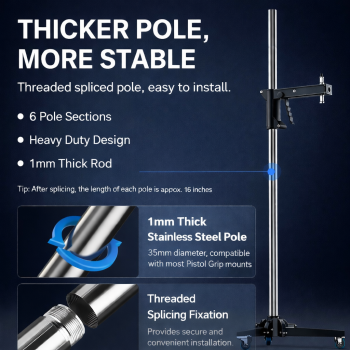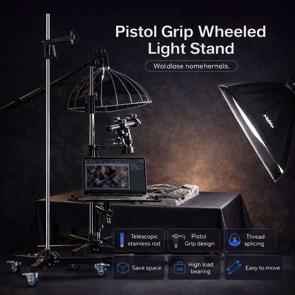 | Pistol Grip Multifungsi Berbeda dari tripod light stand lainnya, tripod light stand ini berfungsi sebagai pengatur posisi lampu secara cepat dan presisi. Anda dapat menyesuaikan arah dan sudut lampu dengan stabil tanpa perlu membuka pengunci manual. Sistem dudukan mendukung ulir 1/4 inch dan 3/8 inch, sangat kompatibel dengan berbagai peralatan fotografi. |