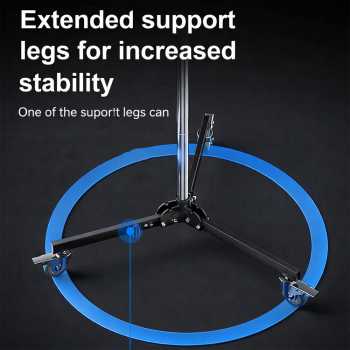 | Berdiri Stabil dengan 3 Roda Kaki Tripod light stand ini menggunakan desain tiga kaki yang dirancang untuk memberikan keseimbangan optimal saat digunakan di berbagai kondisi studio. Diameter bukaan hingga 1.06 M, distribusi beban menjadi lebih merata dan stand tetap stabil. Stand dapat dipidahkan dengan mudah tanpa harus mengangkat atau membongkar peralatan. |