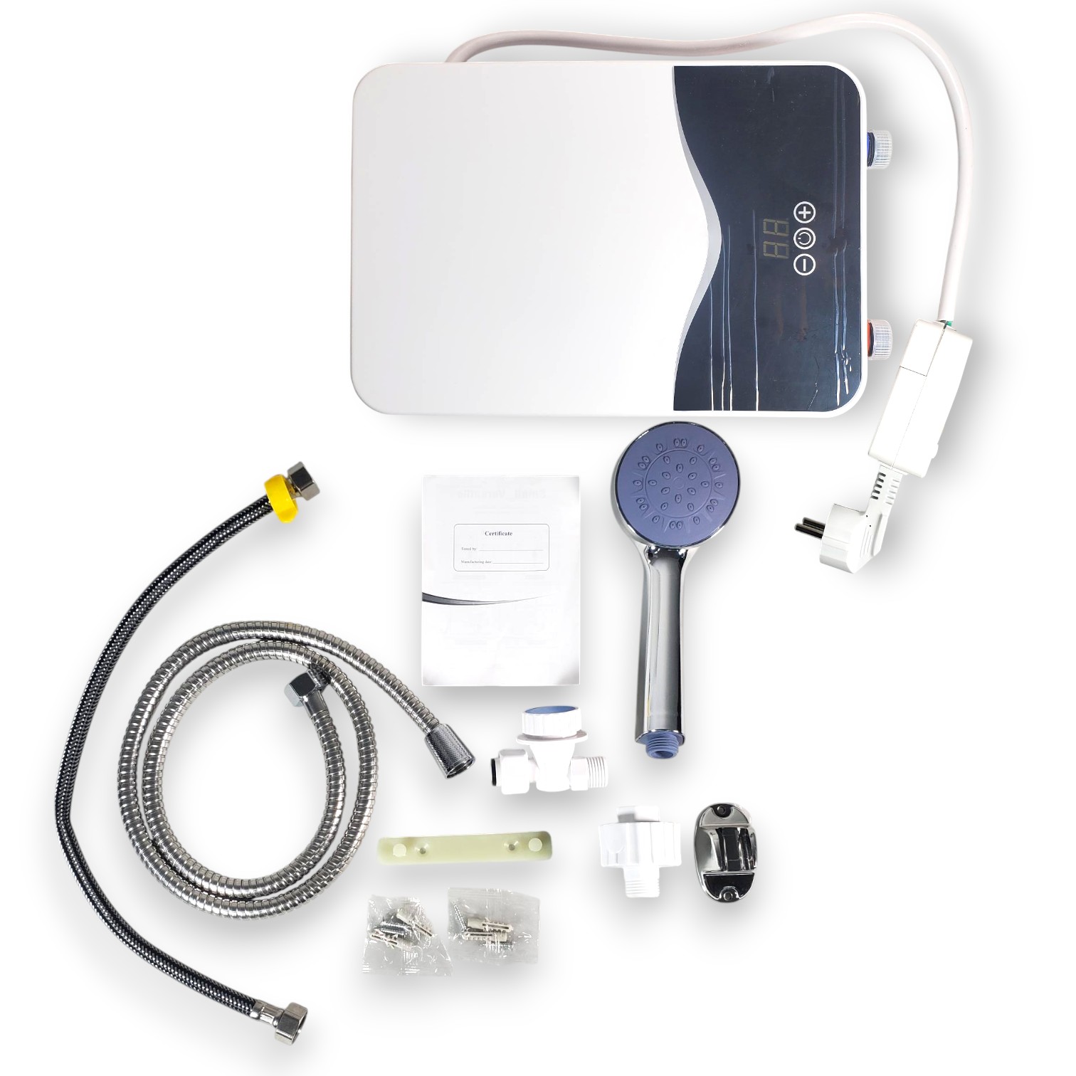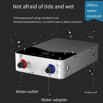 | Pemanas Instan 5500 W Dilengkapi elemen pemanas stainless steel dengan konduktivitas panas tinggi serta daya besar 5500 W, air dingin dapat dipanaskan menjadi air panas dalam waktu 3 detik saja. Teknologi pemanasan instan ini memungkinkan Anda menikmati air panas tanpa menunggu lama. |
