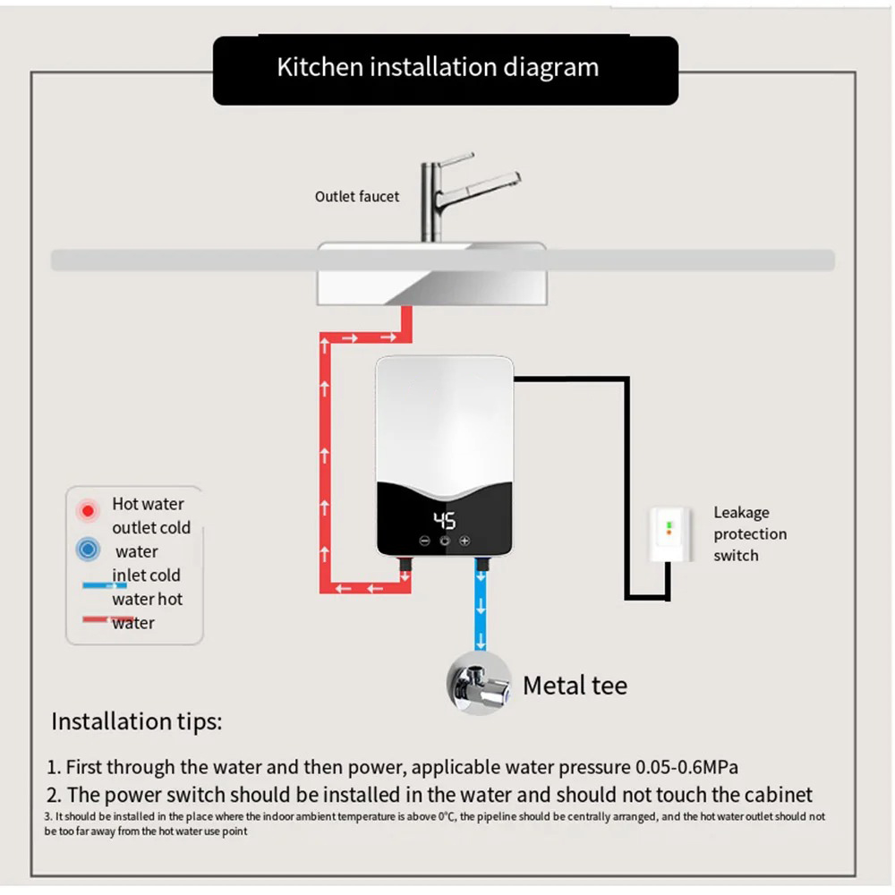 | Berbagai Kondisi Tekanan Air Water heater ini bekerja optimal pada tekanan air 0.1-0.4 MPa, sehingga tetap andal digunakan di rumah bertingkat, apartemen tinggi, maupun saat pemakaian bersamaan di jam sibuk. Dengan tekanan air tersebut, aliran air tetap stabil tanpa gangguan, memberikan pengalaman mandi yang konsisten dan nyaman. |