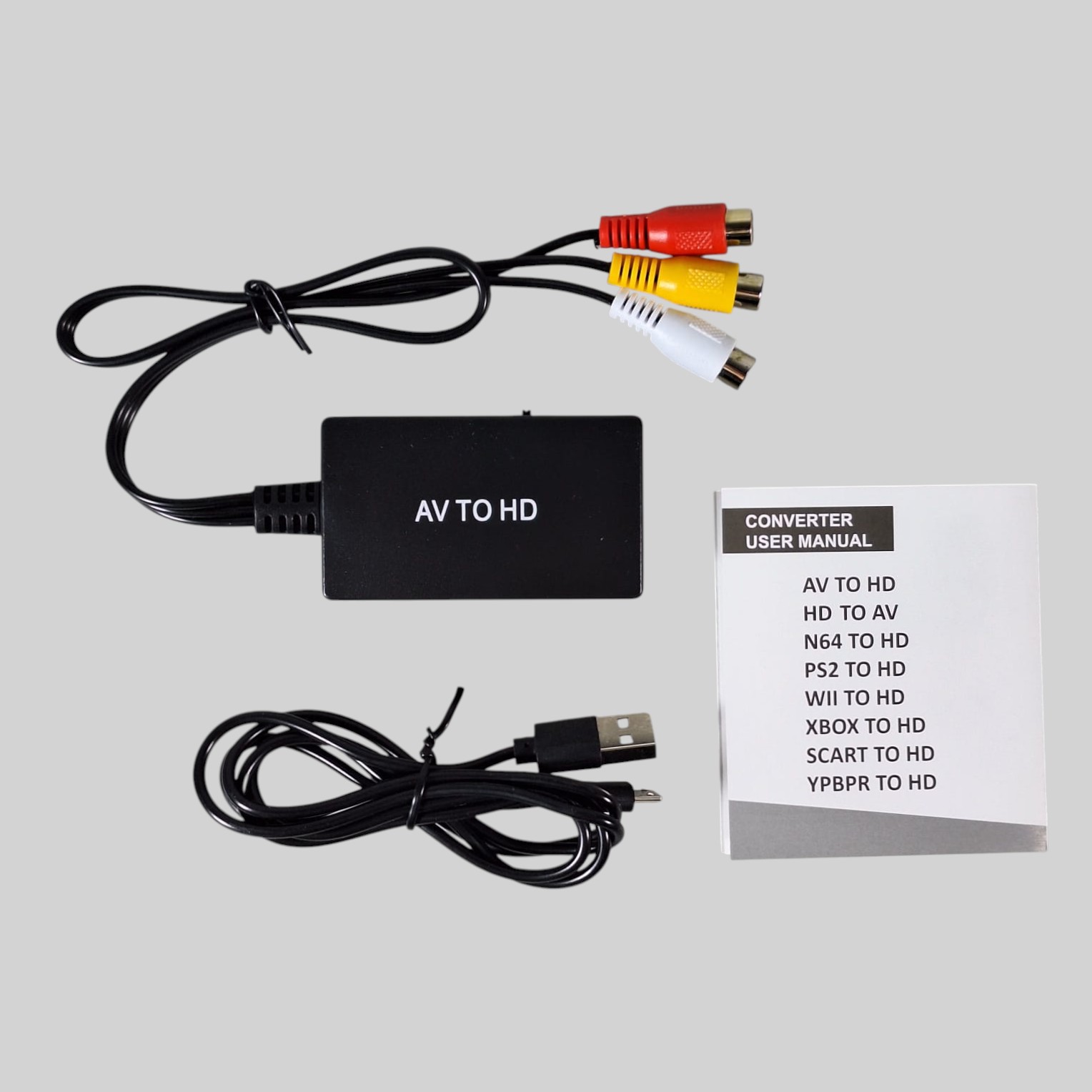 Konverter ini berfungsi untuk mengonversi sinyal dari composite audio video menjadi HDMI. Dengan mengubah sinyal tersebut, Anda dapat memainkan game konsol seperti PS2, PS3, PSP, WII, XBOX 360 dan menyambungkannya ke monitor atau TV. Kualitas gambar dan suara yang dihasilkan pun akan setara dengan kualitas HD. Alat ini hanya dapat mengonversi AV ke HDMI, tidak mendukung HDMI ke AV.