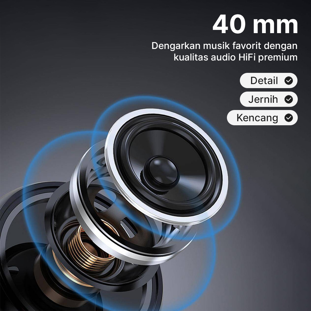 | Kualitas Audio Premium Nikmati musik favorit dengan kualitas audio premium berkat fitur HiFi surround. Fitur ini pastikan Anda bisa mendengar musik yang detail dan jernih lengkap dengan bass kencang untuk temani berbagai aktivitas. |