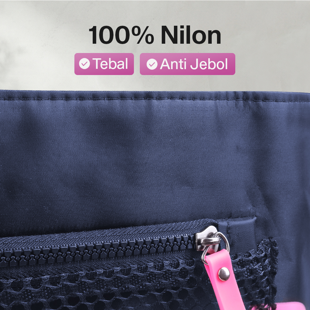 | Tebal dan Kokoh Bahan nilon yang digunakan tebal yang membuat tote bag ini kuat dan tidak mudah sobek. Kini Anda dapat membwa banyak barang tanpa khawatir rusak atau jebol. Cocok untuk penggunaan sehari-hari dalam jangka panjang. |