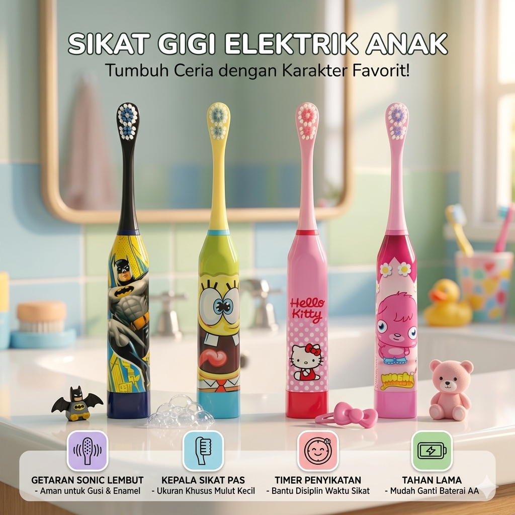 Ingin anak rajin menyikat gigi tanpa dipaksa? Sikat gigi elektrik anak ini hadir dengan desain kartun lucu yang disukai anak-anak. Getaran lembut membantu membersihkan sisa makanan lebih efektif namun tetap aman untuk gusi. Cocok untuk membiasakan anak menjaga kebersihan gigi sejak dini dengan cara yang menyenangkan.