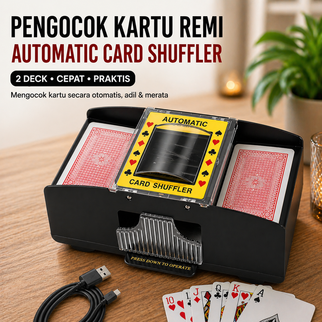 | Mudah Digunakan Cukup tekan satu tombol, dan kartu akan otomatis tercampur dalam beberapa detik. Tidak perlu keahlian khusus atau tenaga ekstra. Sangat cocok untuk semua usia, termasuk lansia atau anak-anak yang ingin bermain bersama. |