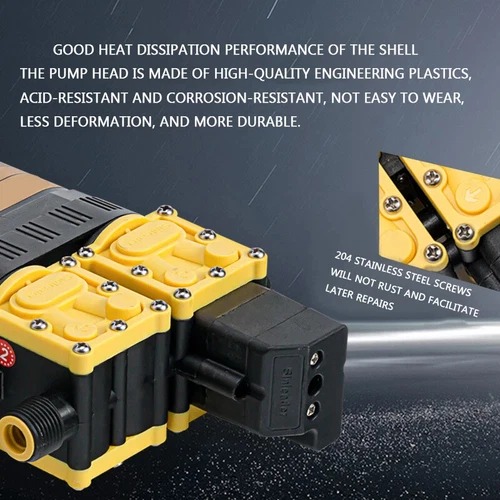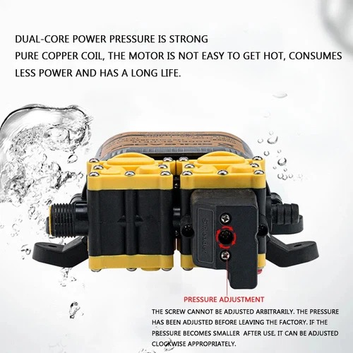 | Konsumsi Arus Efisien Beroperasi pada 12 V dengan konsumsi arus 4-7 A, pompa ini hemat energi namun tetap bertenaga. Sangat kompatibel dengan aki kendaraan, baterai 12 V, atau sistem kelistrikan portable, sehingga fleksibel digunakan di berbagai lokasi, termasuk area tanpa sumber listrik PLN. |