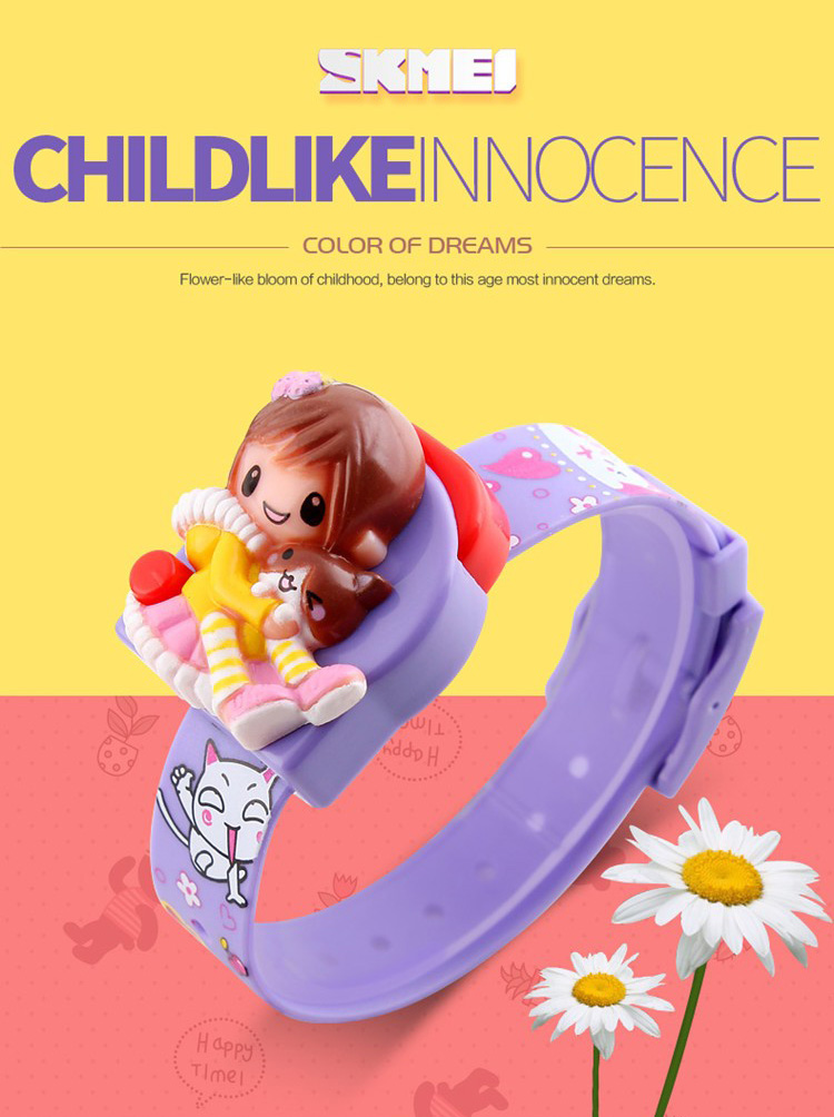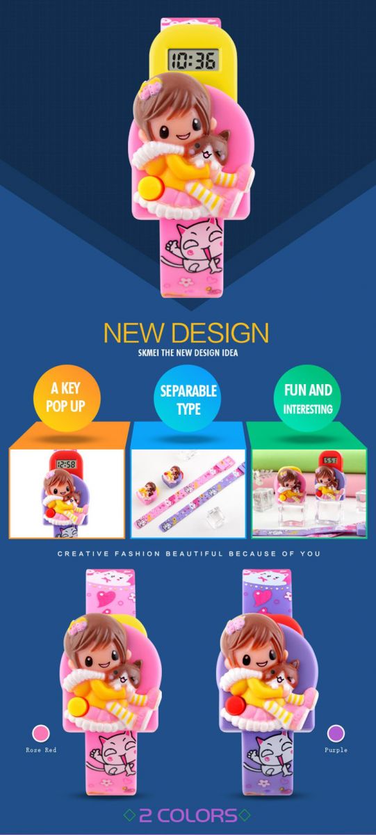 | Desain Lucu Jam tangan anak SKMEI memiliki gambar kartun yang lucu bergambar seorang anak kecil yang sedang menggendong kucing membuat anak semakin senang menggunakan jam tangan ini.