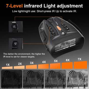 | Night Vision hingga 800 M Teropong ini dilengkapi fitur night vision yang memungkinkan pengamatan objek hingga jarak 600 M dalam kondisi gelap. Sangat membantu untuk observasi malam hari tanpa cahaya alami. Anda juga bisa mendapatkan cahaya tambahan karena teropong binocular dilengkapi dengan senter di bagian tengah. |