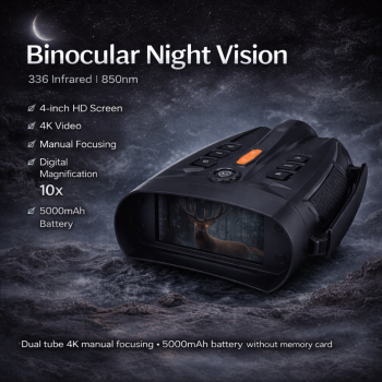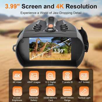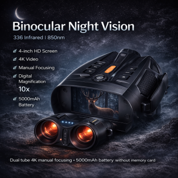 | Lensa Binocular Dual Tube 4K Ultra HD Vtiisamao Z10 dapat digunakan layaknya kamera digital untuk mengambil foto maupun merekam video. Mendukung resolusi video hingga 5K dan foto 48 MP, sehingga detail objek tetap terlihat jelas. gambar lebih tajam, detail, dan minim noise bahkan dalam kondisi minim cahaya. Sangat ideal untuk observasi jarak jauh seperti berburu, wildlife watching, dan patroli malam. Hasil rekaman dapat disimpan menggunakan TF Card dengan kapasitas hingga 32 GB yang dijual terpisah. |
