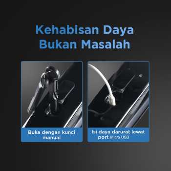 | Kehabisan Daya Bukan Masalah Daya smart door lock habis saat digunakan? Tak perlu khawatir. Gunakan kunci atau power bank sebagai sumber listrik sementara untuk membuka pintu. |