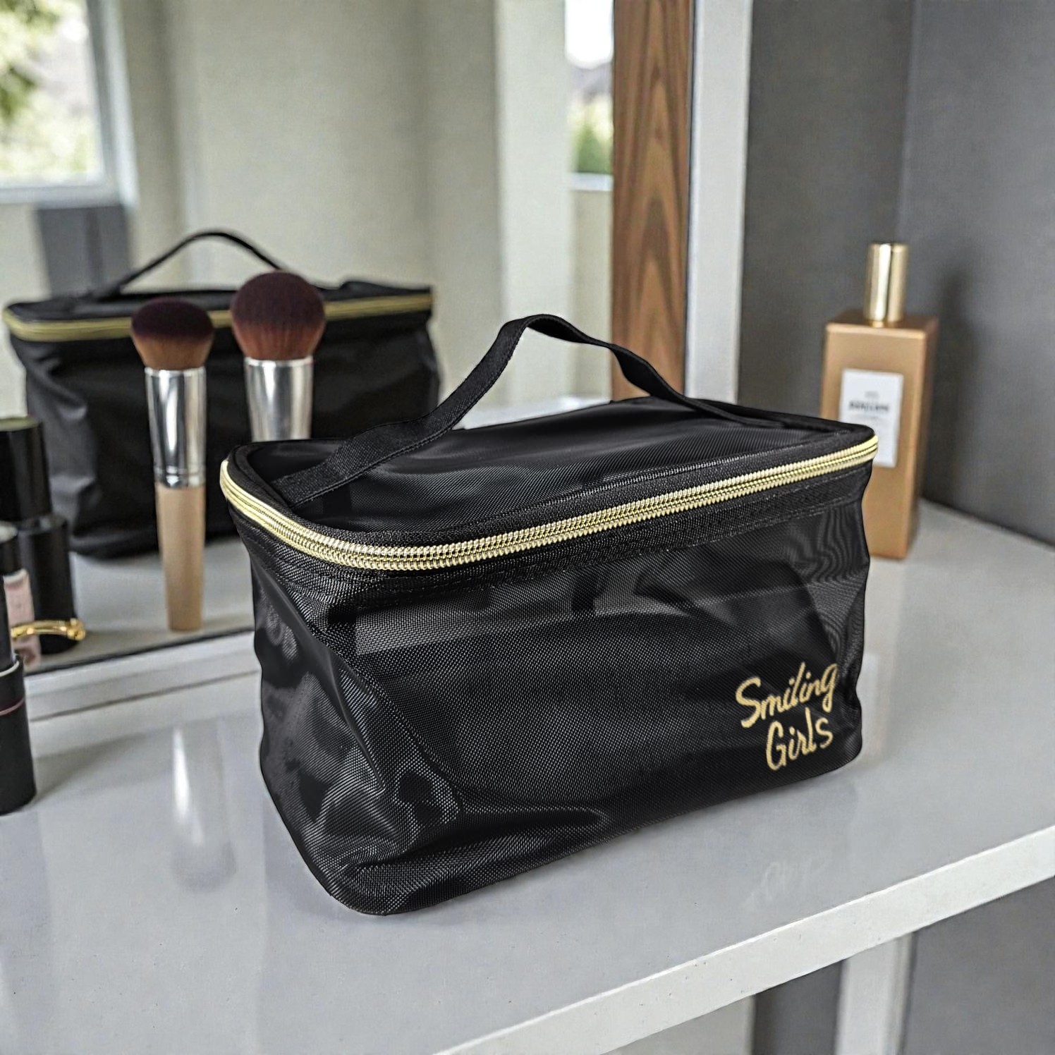| Desain Mesh Akibat terburu-buru kerap membuat Anda suka lupa membawa lipstik atau maskara. Ingin mengecek isi tas pun, terkadang tidak dilakukan karena merasa repot harus membongkar semua peralatan kosmetik. Tas ini didesain semi transparan dengan mesh nilon menarik sehingga Anda dapat mengecek isi tas tanpa harus membongkar atau membukanya. |